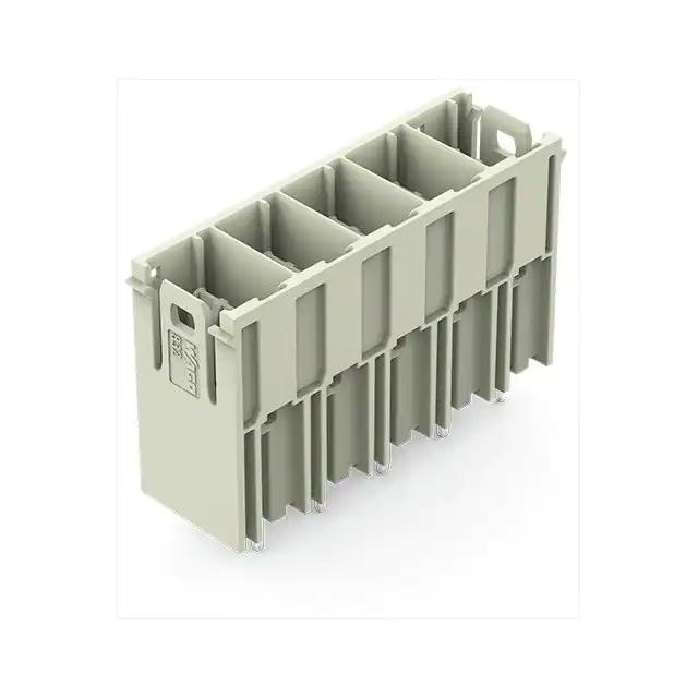 This is manufactured by WAGO Corporation. The manufacturer part number is 832-3605. It is assigned with possible HTSUS value of 8536.90.4000. The product is rohs3 compliant. Moreover, it has solder terminal style. The product also features robust polybutylene terephthalate (pbt) housing material. The product has -60°c ~ 120°c operating temperature range. It comes in header, male pins, shrouded (4 side) configuration. The product carries possible position value of 5. The typical tail length of the product is [Contact Tail Lenght]. 1.260" (32.00mm) of insulation height. It carries ul94 v-0 of material flammability rating. It is shipped in box. Its typical moisture sensitivity level is 1 (unlimited). An IEC current of 76a. While 600 v is the typical voltage of the product. It has a long 12 weeks standard lead time. The mating finish of the contact is silver. The nominal voltage of the product is 1 kv. The product is available in through hole configuration. It has a classic gray colour. The product mcsmaxi 16, is a highly preferred choice for users. It has 5 positions each level. The product has a vertical of a header orientation. The typical current includes 85 a. Moreover, the product is 0.400" (10.16mm) The product carries 1 levels. The product is made from sturdy electrolytic copper materials. The product is designated with the ear99 code number