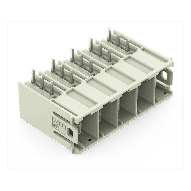 This is manufactured by WAGO Corporation. The manufacturer part number is 832-3645. It is assigned with possible HTSUS value of 8536.90.4000. The product is rohs3 compliant. Moreover, it has solder terminal style. The product also features robust polybutylene terephthalate (pbt) housing material. The product has -60°c ~ 120°c operating temperature range. It comes in header, male pins, shrouded (4 side) configuration. The product carries possible position value of 5. The typical tail length of the product is [Contact Tail Lenght]. 0.650" (16.50mm) of insulation height. It carries ul94 v-0 of material flammability rating. It is shipped in box. Its typical moisture sensitivity level is 1 (unlimited). An IEC current of 76a. While 600 v is the typical voltage of the product. It has a long 12 weeks standard lead time. The mating finish of the contact is silver. The nominal voltage of the product is 1 kv. The product is available in through hole configuration. It has a classic gray colour. The product mcsmaxi 16, is a highly preferred choice for users. It has 5 positions each level. The product has a 90°, right angle of a header orientation. The typical current includes 85 a. Moreover, the product is 0.400" (10.16mm) The product carries 1 levels. The product is made from sturdy electrolytic copper materials. The product is designated with the ear99 code number