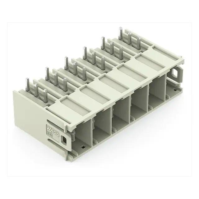This is manufactured by WAGO Corporation. The manufacturer part number is 832-3646. It is assigned with possible HTSUS value of 8536.90.4000. The product is rohs3 compliant. Moreover, it has solder terminal style. The product also features robust polybutylene terephthalate (pbt) housing material. The product has -60°c ~ 120°c operating temperature range. It comes in header, male pins, shrouded (4 side) configuration. The product carries possible position value of 6. The typical tail length of the product is [Contact Tail Lenght]. 0.650" (16.50mm) of insulation height. It carries ul94 v-0 of material flammability rating. It is shipped in box. Its typical moisture sensitivity level is 1 (unlimited). An IEC current of 76a. While 600 v is the typical voltage of the product. It has a long 12 weeks standard lead time. The mating finish of the contact is silver. The nominal voltage of the product is 1 kv. The product is available in through hole configuration. It has a classic gray colour. The product mcsmaxi 16, is a highly preferred choice for users. It has 6 positions each level. The product has a 90°, right angle of a header orientation. The typical current includes 85 a. Moreover, the product is 0.400" (10.16mm) The product carries 1 levels. The product is made from sturdy electrolytic copper materials. The product is designated with the ear99 code number