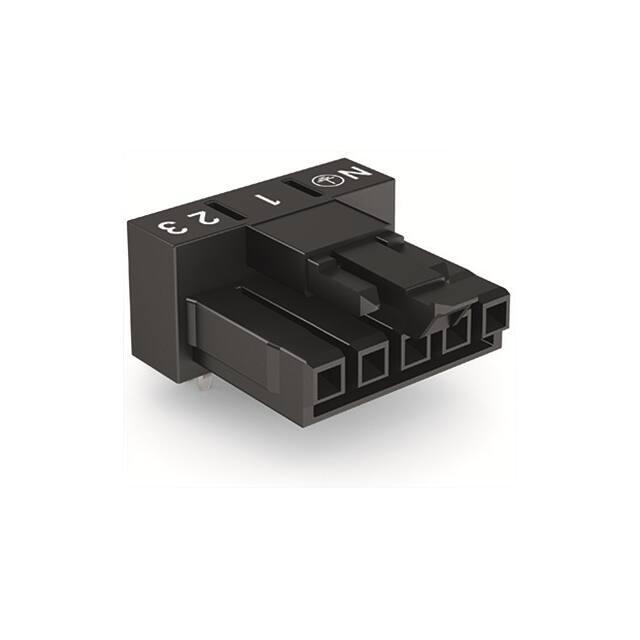 This is manufactured by WAGO Corporation. The manufacturer part number is 890-805/011-000. It is assigned with possible HTSUS value of 8536.90.4000. The product is rohs3 compliant. Moreover, it has solder terminal style. The product also features robust polyamide (pa66), nylon 6/6 housing material. The product has -35°c ~ 85°c operating temperature range. The typical length of the wire strip is 9mm. It comes in header, female sockets configuration. The product carries possible position value of 5. The typical tail length of the product is [Contact Tail Lenght]. A 0.25-1.5mm² of wire gauge. 0.480" (12.20mm) of insulation height. It is shipped in box. Its typical moisture sensitivity level is 1 (unlimited). An IEC current of 13a. While 16-22 awg is its range or wire gauge. While 600 v is the typical voltage of the product. It has a long 12 weeks standard lead time. The nominal voltage of the product is 250 v. The splendid features of the product include locking feature. The product is available in through hole configuration. It has a classic black colour. The product winsta® mini, is a highly preferred choice for users. It has 5 positions each level. The product has a 90°, right angle of a header orientation. The typical current includes 12 a. Moreover, the product is 0.173" (4.40mm) The product carries 1 levels. The product is designated with the ear99 code number