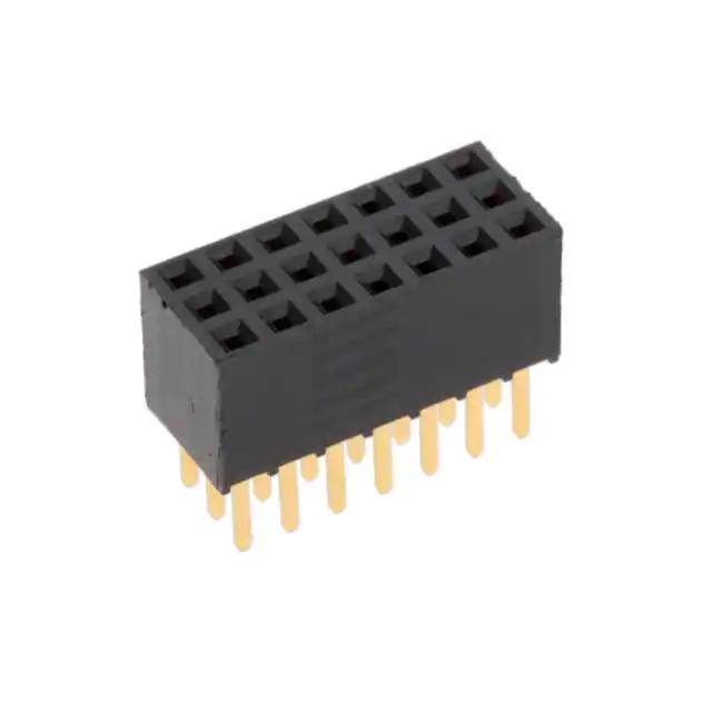 This is manufactured by Samtec Inc.. The manufacturer part number is SSW-107-02-G-T. It has nice contact finishing of gold. Additionally, the product is designed with board to board or cable Style. It has possible gold contact post finishing. It is assigned with possible HTSUS value of 8536.69.4040. The product is rohs3 compliant. The product has -55°c ~ 125°c operating temperature range. Additionally, it features 3.00µin (0.076µm) of post thickness. The product carries possible position value of 21. 0.194" (4.93mm) is the given possible contact length (post) values. 0.335" (8.51mm) of insulation height. It comes in 3 of rows. It carries ul94 v-0 of material flammability rating. In addition, black is the insulation color of the product. It has a typical square shape. It has a robust liquid crystal polymer (lcp) insulation material. It is shipped in bulk. It carries 0.100" (2.54mm) of row spacing. receptacle Connector type offer robust functionality. However, all is the Number of Positions Loaded. Its typical moisture sensitivity level is not applicable. However, 20.0µin (0.51µm) is the "Contact Finish Thickness - Mating" of the product. Furthermore, push-pull is the Fastening Type of the product. The product features solder termination style. It has a long 11 weeks standard lead time. Additionally, the product's output is 4.7a per contact It has 0.100" (2.54mm) of pitch-mating value. The product is available in through hole configuration. The product ssw, is a highly preferred choice for users. It has typical contact type of forked. The product is designated with the ear99 code number Moreover, it corresponds to ssw-107, a base product number of the product. The product is made from sturdy phosphor bronze materials.