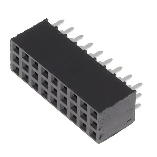 This is manufactured by Samtec Inc.. The manufacturer part number is SSW-109-21-L-T. It has nice contact finishing of gold. Additionally, the product is designed with board to board or cable Style. It has possible tin contact post finishing. It is assigned with possible HTSUS value of 8536.69.4040. The product is rohs3 compliant. The product has -55°c ~ 125°c operating temperature range. The product carries possible position value of 27. 0.104" (2.64mm) is the given possible contact length (post) values. 0.335" (8.51mm) of insulation height. It comes in 3 of rows. It carries ul94 v-0 of material flammability rating. In addition, black is the insulation color of the product. It has a typical square shape. It has a robust liquid crystal polymer (lcp) insulation material. It is shipped in bulk. It carries 0.100" (2.54mm) of row spacing. receptacle Connector type offer robust functionality. However, all is the Number of Positions Loaded. Its typical moisture sensitivity level is not applicable. However, 10.0µin (0.25µm) is the "Contact Finish Thickness - Mating" of the product. Furthermore, push-pull is the Fastening Type of the product. The product features solder termination style. It has a long 11 weeks standard lead time. Additionally, the product's output is 4.7a per contact It has 0.100" (2.54mm) of pitch-mating value. The product is available in through hole configuration. The product ssw, is a highly preferred choice for users. It has typical contact type of forked. The product is designated with the ear99 code number Moreover, it corresponds to ssw-109, a base product number of the product. The product is made from sturdy phosphor bronze materials.