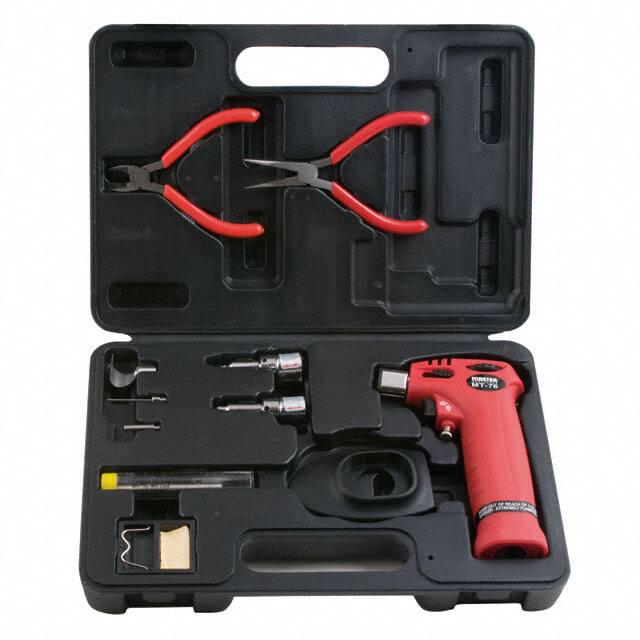 This is manufactured by Master Appliance Co. The manufacturer part number is MT-76K. It is assigned with possible HTSUS value of 8515.11.0000. The product is rohs3 compliant. In addition, it is reach unaffected. The product is also supplied with torch, case, removable bench-top stand, 4 nozzles, 2 cutters, pliers, 60/40 solder, sponge. The product's typical temperature range incudes 2500°f (1371°c). This is basically a useful and handy butane torch, kit. It is shipped in box. Its typical moisture sensitivity level is not applicable. It has a long 4 weeks standard lead time. The splendid features of the product include child resistant (cpsc compliant), hands-free, refillable self-contained fuel tank, removable base, safety lock, self-igniting. The typical product's weight is 3 lbs (1.4 kg). It has a classic red colour. The product microtorch® mt, is a highly preferred choice for users. Moreover, it corresponds to mt-76, a base product number of the product. The product is designated with the ear99 code number