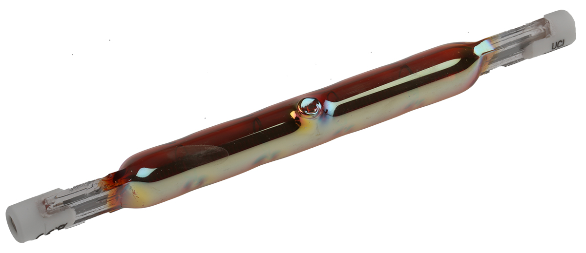 This is 10mm R7s Gold 118 mm 5000h Infrared (IR) Heat Lamp 230 V 500 W manufactured by RS Pro. The manufacturer part number is 796-0221. Its diameter is 10mm. Moreover, the product has a nominal 230 v voltage rating. Its accurate length is 118 mm.