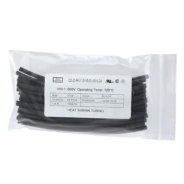 This is manufactured by Qualtek. The manufacturer part number is Q2-Z-RK1-3/16-01-6IN-24. Its diameter is 3/16". Its typical moisture sensitivity level is not applicable. It is assigned with possible HTSUS value of 3926.90.9985. It is shipped in refill pack. It has a classic black colour. The product q2-z, is a highly preferred choice for users. The product is rohs3 compliant. In addition, it is reach unaffected. The product has a shrinkage ratio of 2 to 1. Moreover, it corresponds to q2-z-rk1-3/16, a base product number of the product. It has a long 23 weeks standard lead time. The product is designated with the ear99 code number