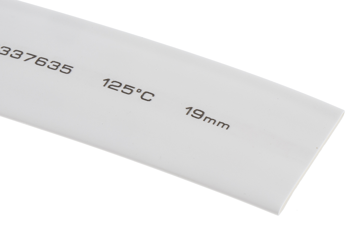 This is White Heat Shrink Tubing 2:1 19mm Sleeve Dia. x 5m manufactured by RS Pro. The manufacturer part number is 700-4787. The product is made from highly stable and reliable polyolefin.