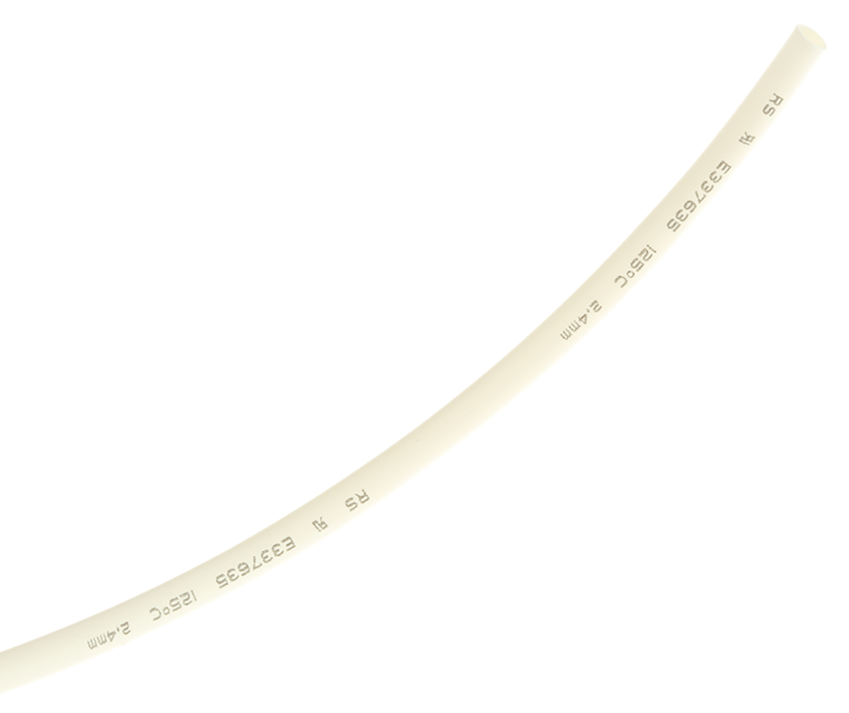 This is White Heat Shrink Tubing 2:1 2.4mm Sleeve Dia. x 10m manufactured by RS Pro. The manufacturer part number is 700-4765. The product is made from highly stable and reliable polyolefin.
