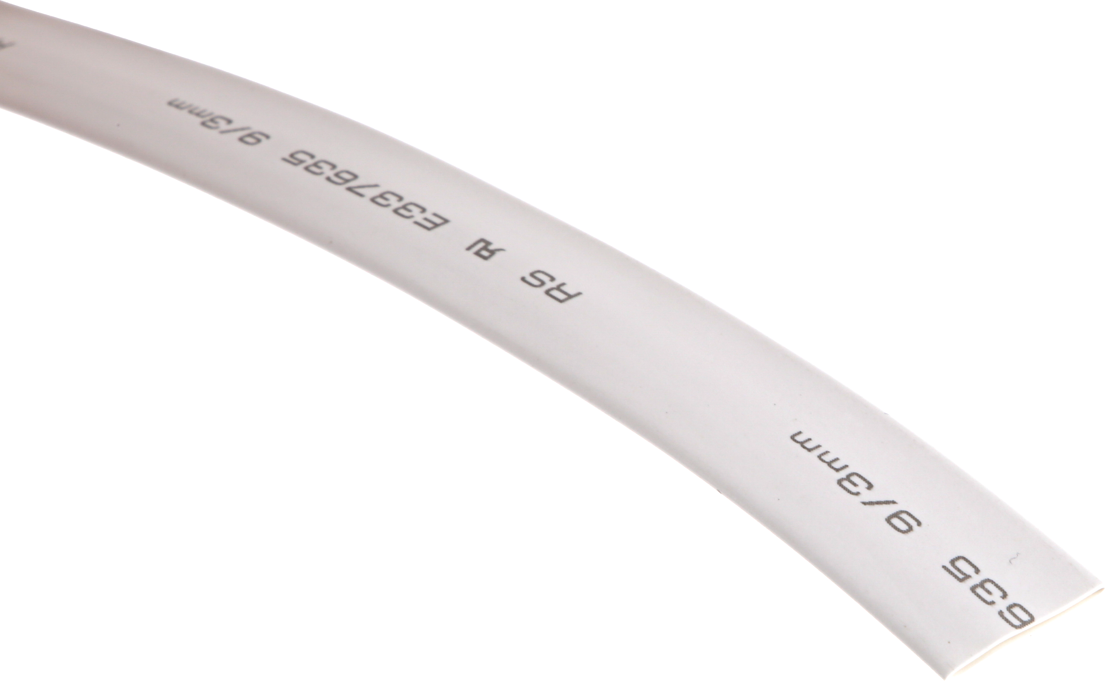 This is White 3:1 Heat Shrink Tubing 9mm Sleeve Dia. x 5m Length manufactured by RS Pro. The manufacturer part number is 700-4551. The product is made from highly stable and reliable polyolefin.