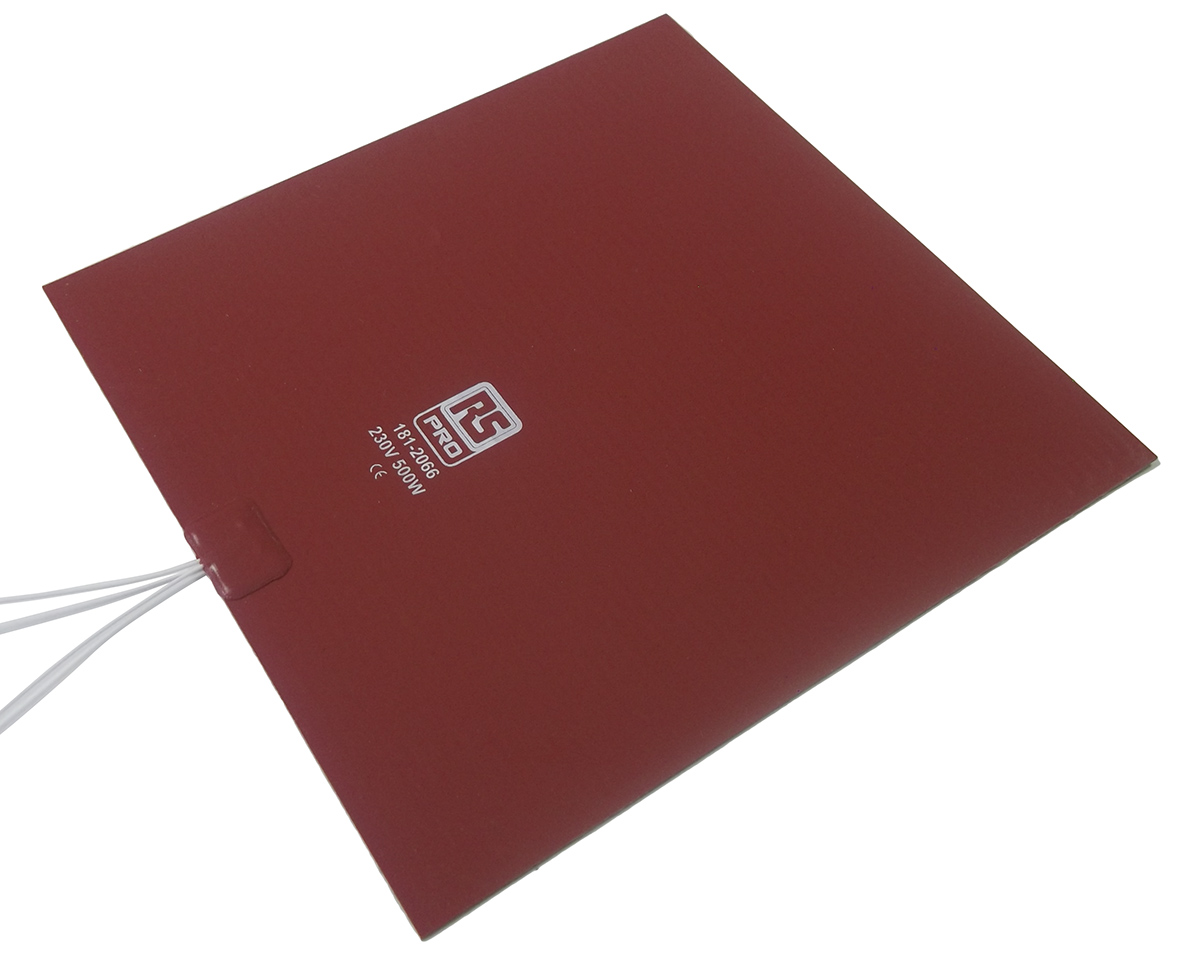 This is SILICONE HEATER MAT 10" x 10" 230V 500W manufactured by RS PRO. The manufacturer part number is 181-2066. The given dimensions of the product include 10 x 10 in.