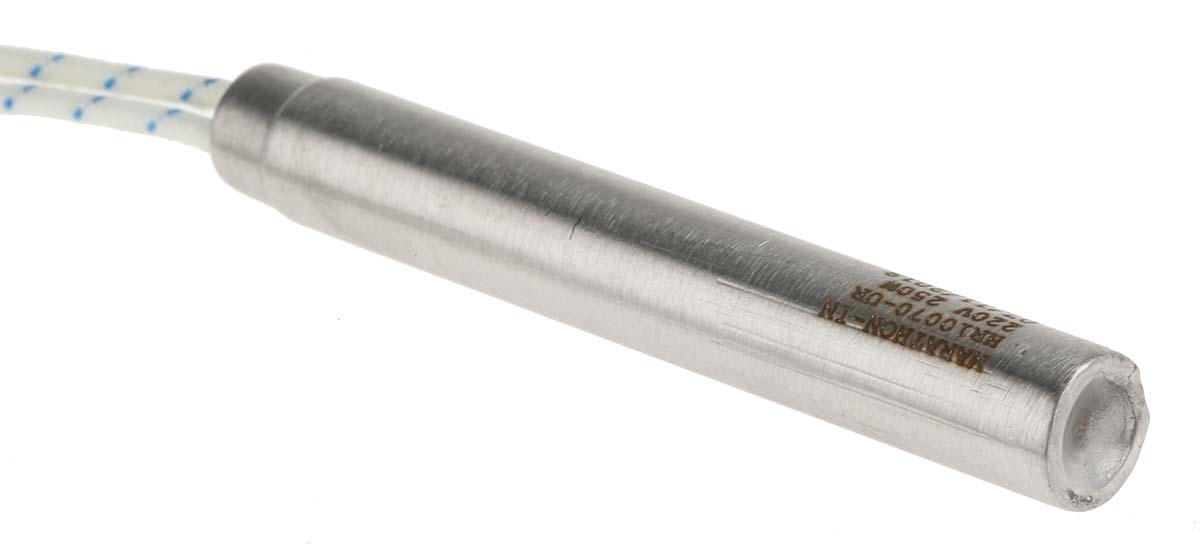 This is Cartridge Heater 10 mm x 70mm 250 W 220 V ac manufactured by RS Pro. The manufacturer part number is 860-6741. Its diameter is 10 mm. Its accurate length is 70mm.