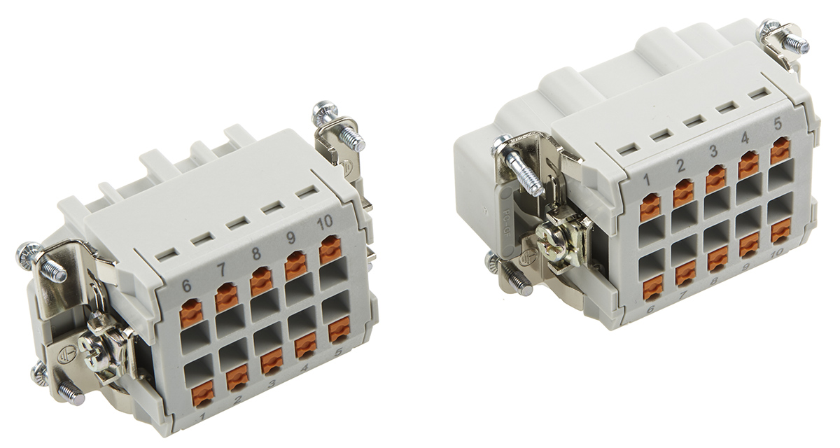 This is manufactured by Phoenix Contact. The manufacturer part number is 1411488. The product has a current rating of 16a. Moreover, the product has a nominal 500 v voltage rating. In addition, female, male is the available "Gender" of the product. It has a typical thread size of m25. The product hc, is a highly preferred choice for users. The product contains 10 contacts. Additionally, the product is designed with side-hood, bottom-base Style. It is assigned with possible HTSUS value of 8536.69.8000. The product is rohs compliant. Moreover, it has push in terminal style. The product carries possible position value of 10+ground. The product is also supplied with 5 pcs - 1 base, 1 cable gland, 2 inserts, 1 housing. It is shipped in bulk. Its typical moisture sensitivity level is 1 (unlimited). It has a long 6 weeks standard lead time. The product heavycon®, is a highly preferred choice for users. The product is available in b10 size. Contents Include: cable and panel connector assembly. The product is designated with the ear99 code number
