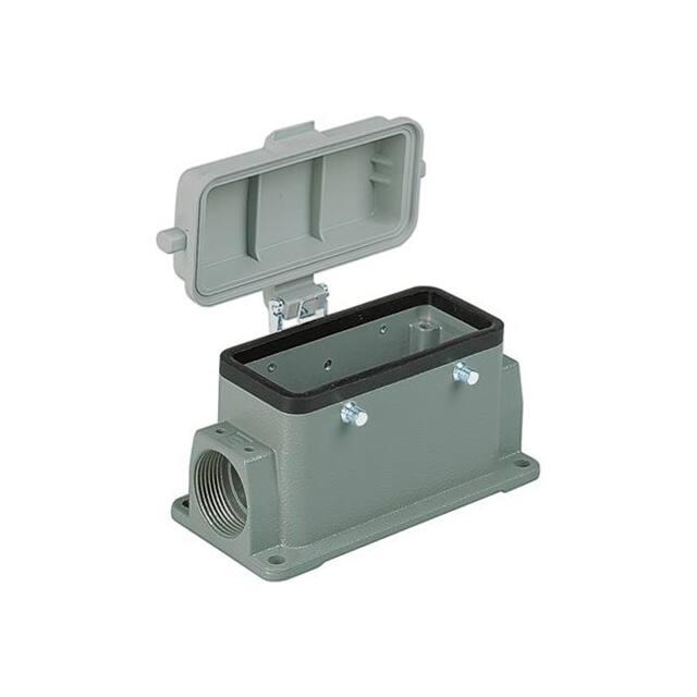 This is manufactured by Harting. The manufacturer part number is 09300240221. Additionally, the product is designed with side entry Style. It is assigned with possible HTSUS value of 8538.90.8180. The product is rohs3 compliant. It has a typical thread size of pg29. The product has -40°c ~ 125°c operating temperature range. Its typical moisture sensitivity level is 1 (unlimited). The product's housing has finished with a rugged powder coated. In addition, it is reach unaffected. It has an integral gray housing colour. It is shipped in bulk. base - box mount Connector type offer robust functionality. The product's diameters include 5.669" l x 2.244" w x 3.181" h (144.00mm x 57.00mm x 80.80mm). It has a long 11 weeks standard lead time. The product also features robust aluminum, die cast housing material. It is IP rated with ip65 - dust tight, water resistant. The splendid features of the product include cover. The product han® b, is a highly preferred choice for users. Lock Type & Location Information: locking clip (2) on hood. The product is available in 24b size. Moreover, it corresponds to 09300240, a base product number of the product. The product is designated with the ear99 code number
