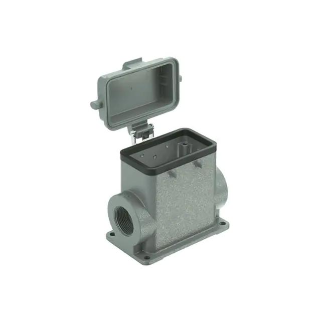 This is manufactured by HARTING. The manufacturer part number is 19300100266. Additionally, the product is designed with side entry Style. It is assigned with possible HTSUS value of 8538.90.8180. The product is rohs3 compliant. It has a typical thread size of m25. The product has -40°c ~ 125°c operating temperature range. Its typical moisture sensitivity level is 1 (unlimited). The product's housing has finished with a rugged powder coated. In addition, it is reach unaffected. It has an integral gray housing colour. It is shipped in bulk. base - box mount Connector type offer robust functionality. The product's diameters include 3.701" l x 2.244" w x 3.181" h (94.00mm x 57.00mm x 80.80mm). It has a long 11 weeks standard lead time. The product also features robust aluminum, die cast housing material. It is IP rated with ip65 - dust tight, water resistant. The splendid features of the product include cover, feed through. The product han® b, is a highly preferred choice for users. Lock Type & Location Information: locking clip (2) on hood. The product is available in 10b size. Moreover, it corresponds to 19300100, a base product number of the product. The product is designated with the ear99 code number