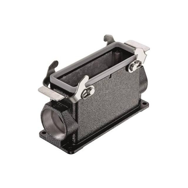 This is manufactured by HARTING. The manufacturer part number is 09370240271. Additionally, the product is designed with side entry Style. It is assigned with possible HTSUS value of 8538.90.8180. The product is rohs3 compliant. It has a typical thread size of pg29. The product has -40°c ~ 125°c operating temperature range. Its typical moisture sensitivity level is 1 (unlimited). The product's housing has finished with a rugged powder coated. In addition, it is reach unaffected. It has an integral black housing colour. It is shipped in bulk. base - box mount Connector type offer robust functionality. The product's diameters include 5.669" l x 2.244" w x 3.181" h (144.00mm x 57.00mm x 80.80mm). It has a long 15 weeks standard lead time. The product also features robust aluminum, die cast housing material. It is IP rated with ip65 - dust tight, water resistant. The splendid features of the product include feed through. The product han® m, is a highly preferred choice for users. Lock Type & Location Information: locking clip (2) on base bottom. The product is available in 24b size. Moreover, it corresponds to 09370240, a base product number of the product. The product is designated with the ear99 code number