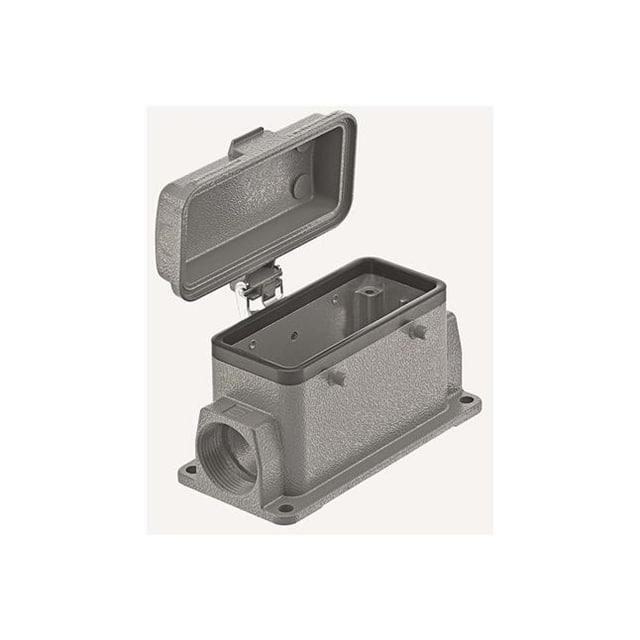 This is manufactured by HARTING. The manufacturer part number is 09300162260. Additionally, the product is designed with side entry Style. It is assigned with possible HTSUS value of 8538.90.8180. The product is rohs3 compliant. It has a typical thread size of pg21. The product has -40°c ~ 125°c operating temperature range. Its typical moisture sensitivity level is 1 (unlimited). The product's housing has finished with a rugged powder coated. In addition, it is reach unaffected. It has an integral gray housing colour. It is shipped in bulk. base - box mount Connector type offer robust functionality. The product's diameters include 4.606" l x 2.244" w x 2.197" h (117.00mm x 57.00mm x 55.80mm). It has a long 11 weeks standard lead time. The product also features robust aluminum, die cast housing material. It is IP rated with ip65 - dust tight, water resistant. The splendid features of the product include cover, feed through. The product han® b, is a highly preferred choice for users. Lock Type & Location Information: locking clip (2) on hood. The product is available in 16b size. Moreover, it corresponds to 09300162, a base product number of the product. The product is designated with the ear99 code number