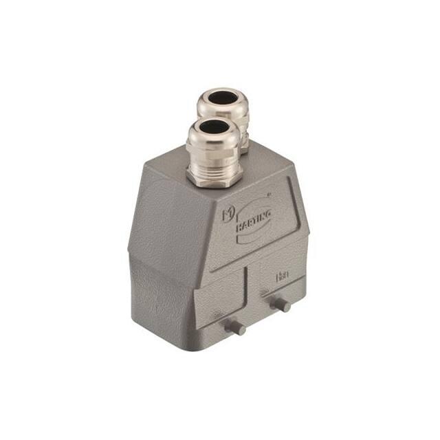 This is manufactured by HARTING. The manufacturer part number is 19300100495. Additionally, the product is designed with top entry, dual Style. It is assigned with possible HTSUS value of 8538.90.8180. The product is rohs3 compliant. It has a typical thread size of m20. The product has -40°c ~ 125°c operating temperature range. Its typical moisture sensitivity level is 1 (unlimited). The product's housing has finished with a rugged powder coated. In addition, it is reach unaffected. It has an integral gray housing colour. It is shipped in bulk. hood Connector type offer robust functionality. The product's diameters include 2.858" l x 1.772" w x 2.835" h (72.60mm x 45.00mm x 72.00mm). It has a long 11 weeks standard lead time. The product also features robust aluminum, die cast housing material. It is IP rated with ip65/ip66/ip67 - dust tight, water resistant, waterproof. The product han® b, is a highly preferred choice for users. Lock Type & Location Information: locking clip (1) on base bottom. The product is available in 10b size. Moreover, it corresponds to 19300100, a base product number of the product. The product is designated with the ear99 code number
