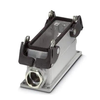This is manufactured by Phoenix Contact. The manufacturer part number is 1771969. The product is available in box mount configuration. The product hc, is a highly preferred choice for users. It has a typical thread size of pg21. It comes in connector base configuration. Additionally, the product is designed with side entry Style. It is assigned with possible HTSUS value of 8538.90.8180. The product is rohs compliant. The product has -40°c ~ 125°c operating temperature range. Its typical moisture sensitivity level is 1 (unlimited). The product's housing has finished with a rugged powder coated. It has an integral gray housing colour. It is shipped in bulk. base - box mount Connector type offer robust functionality. The product's diameters include 5.669" l x 2.244" w x 2.638" h (144.00mm x 57.00mm x 67.00mm). The product also features robust aluminum, die cast housing material. The product heavycon® b, is a highly preferred choice for users. Lock Type & Location Information: locking clip (2) on base bottom. The product is available in b24 size. The product is designated with the ear99 code number
