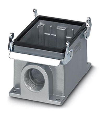 This is manufactured by Phoenix Contact. The manufacturer part number is 1604868. The product heavycon, is a highly preferred choice for users. It comes in box mounting base configuration. Additionally, the product is designed with side entry Style. It is assigned with possible HTSUS value of 8538.90.8180. The product is rohs compliant. It has a typical thread size of m32. The product has -40°c ~ 125°c operating temperature range. Its typical moisture sensitivity level is 1 (unlimited). The product's housing has finished with a rugged powder coated. It has an integral gray housing colour. It is shipped in bulk. base - box mount Connector type offer robust functionality. The product's diameters include 4.882" l x 3.209" w x 2.835" h (124.00mm x 81.50mm x 72.00mm). The product also features robust aluminum, die cast housing material. It is IP rated with ip65 - dust tight, water resistant. The splendid features of the product include feed through. The product heavycon® b, is a highly preferred choice for users. Lock Type & Location Information: locking clip (2) on base bottom. The product is available in b32 size. The product is designated with the ear99 code number
