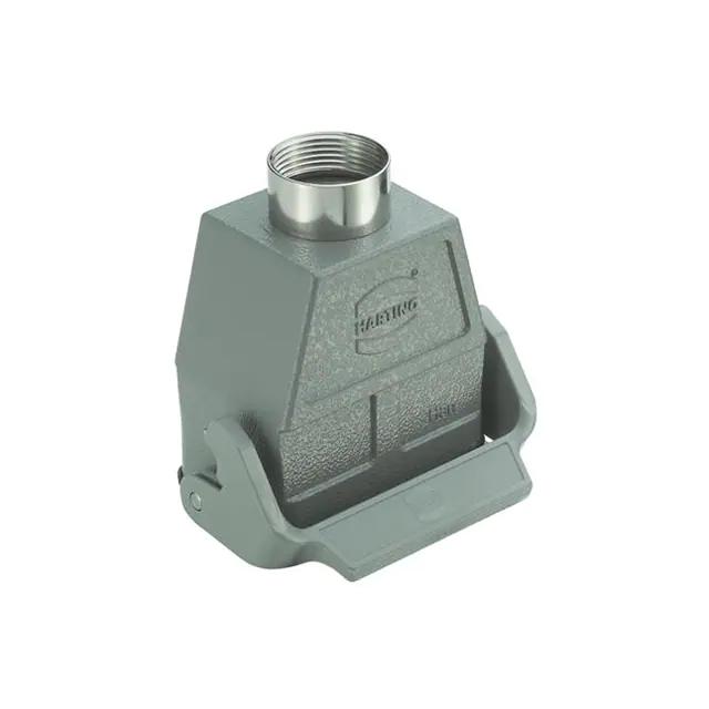 This is manufactured by HARTING. The manufacturer part number is 09300100752. Additionally, the product is designed with bottom entry Style. It is assigned with possible HTSUS value of 8538.90.8180. The product is rohs3 compliant. It has a typical thread size of pg21. The product has -40°c ~ 125°c operating temperature range. Its typical moisture sensitivity level is 1 (unlimited). The product's housing has finished with a rugged powder coated. In addition, it is reach unaffected. It has an integral gray housing colour. It is shipped in bulk. hood - coupling Connector type offer robust functionality. The product's diameters include 2.858" l x 1.693" w x 2.929" h (72.60mm x 43.00mm x 74.40mm). It has a long 11 weeks standard lead time. The product also features robust aluminum, die cast housing material. It is IP rated with ip65 - dust tight, water resistant. The splendid features of the product include cable to cable. The product han® b, is a highly preferred choice for users. Lock Type & Location Information: locking clip (1) on hood top. The product is available in 10b size. Moreover, it corresponds to 09300100, a base product number of the product. The product is designated with the ear99 code number