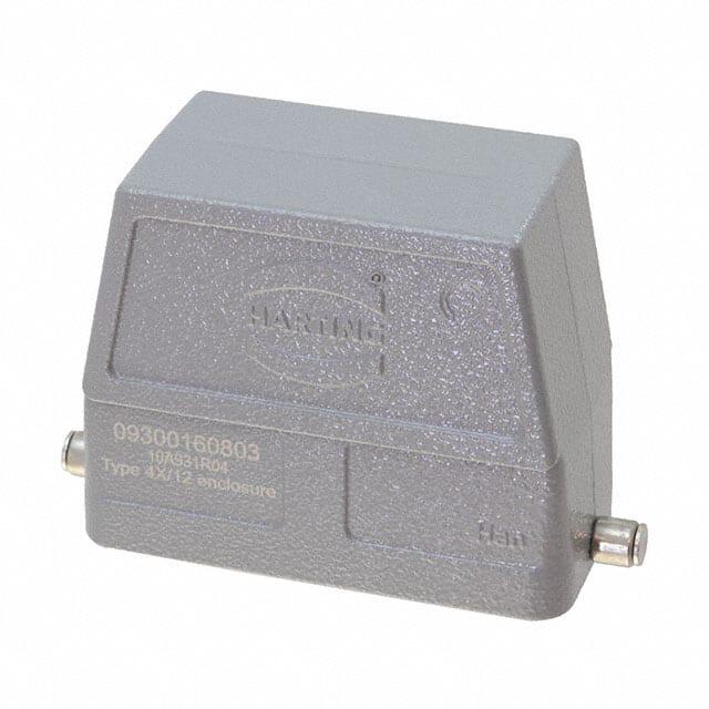 This is manufactured by HARTING. The manufacturer part number is 09300160803. The product is available in cable mount configuration. The product han b, is a highly preferred choice for users. Whereas, the 16b is the manufacture's size code. It comes in hood configuration. The product is available in 16b size. Additionally, the product is designed with bottom entry Style. It is assigned with possible HTSUS value of 8538.90.8180. The product is rohs3 compliant. The product has -40°c ~ 125°c operating temperature range. Its typical moisture sensitivity level is 1 (unlimited). The product's housing has finished with a rugged powder coated. In addition, it is reach unaffected. It has an integral gray housing colour. It is shipped in bulk. hood Connector type offer robust functionality. The product's diameters include 3.681" l x 1.693" w x 2.992" h (93.50mm x 43.00mm x 76.00mm). It has a long 11 weeks standard lead time. The product also features robust aluminum, die cast housing material. It is IP rated with ip65 - dust tight, water resistant. The product han® b, is a highly preferred choice for users. Lock Type & Location Information: locking clip (1) on base bottom. Moreover, it corresponds to 09300160, a base product number of the product. The product is designated with the ear99 code number