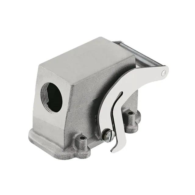 This is manufactured by HARTING. The manufacturer part number is 09620400580. Additionally, the product is designed with side entry Style. It is assigned with possible HTSUS value of 8538.90.8180. The product is rohs3 compliant. It has a typical thread size of pg21. The product has -40°c ~ 125°c operating temperature range. Its typical moisture sensitivity level is 1 (unlimited). In addition, it is reach unaffected. It is shipped in bulk. hood Connector type offer robust functionality. The product's diameters include 4.193" l x 2.795" w x 2.953" h (106.50mm x 71.00mm x 75.00mm). It has a long 11 weeks standard lead time. The product also features robust aluminum, die cast housing material. It is IP rated with ip65 - dust tight, water resistant. The product han® emc, is a highly preferred choice for users. Lock Type & Location Information: locking clip (1) on hood. The product is available in 16b size. Moreover, it corresponds to 09620400, a base product number of the product. The product is designated with the ear99 code number