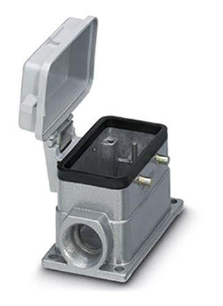 This is manufactured by Phoenix Contact. The manufacturer part number is 1604748. The product heavycon, is a highly preferred choice for users. It is a type of box mounting base accessory. Additionally, the product is designed with side entry Style. It is assigned with possible HTSUS value of 8538.90.8180. The product is rohs compliant. It has a typical thread size of m25. The product has -40°c ~ 125°c operating temperature range. Its typical moisture sensitivity level is 1 (unlimited). The product's housing has finished with a rugged powder coated. It has an integral gray housing colour. It is shipped in bulk. base - box mount Connector type offer robust functionality. The product's diameters include 3.661" l x 2.047" w x 2.047" h (93.00mm x 52.00mm x 52.00mm). The product also features robust aluminum, die cast housing material. It is IP rated with ip65 - dust tight, water resistant. The splendid features of the product include cover, feed through. The product heavycon® b, is a highly preferred choice for users. Lock Type & Location Information: locking clip (2) on hood. The product is available in b10 size. The product is designated with the ear99 code number