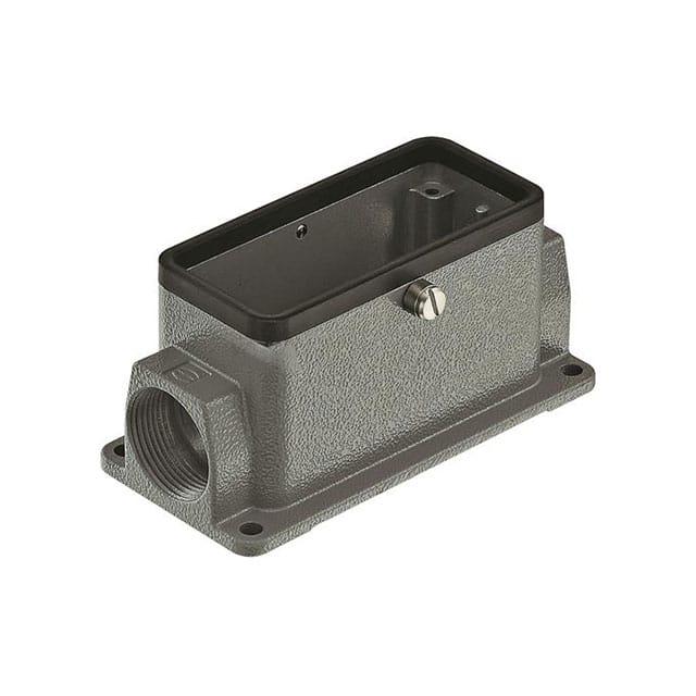 This is manufactured by HARTING. The manufacturer part number is 09300161280. Additionally, the product is designed with side entry Style. It is assigned with possible HTSUS value of 8538.90.8180. The product is rohs3 compliant. It has a typical thread size of pg21. The product has -40°c ~ 125°c operating temperature range. Its typical moisture sensitivity level is 1 (unlimited). The product's housing has finished with a rugged powder coated. In addition, it is reach unaffected. It has an integral gray housing colour. It is shipped in bulk. base - box mount Connector type offer robust functionality. The product's diameters include 4.606" l x 2.244" w x 2.197" h (117.00mm x 57.00mm x 55.80mm). It has a long 11 weeks standard lead time. The product also features robust aluminum, die cast housing material. It is IP rated with ip65 - dust tight, water resistant. The splendid features of the product include feed through. The product han® b, is a highly preferred choice for users. Lock Type & Location Information: locking clip (1) on hood. The product is available in 16b size. Moreover, it corresponds to 09300161, a base product number of the product. The product is designated with the ear99 code number