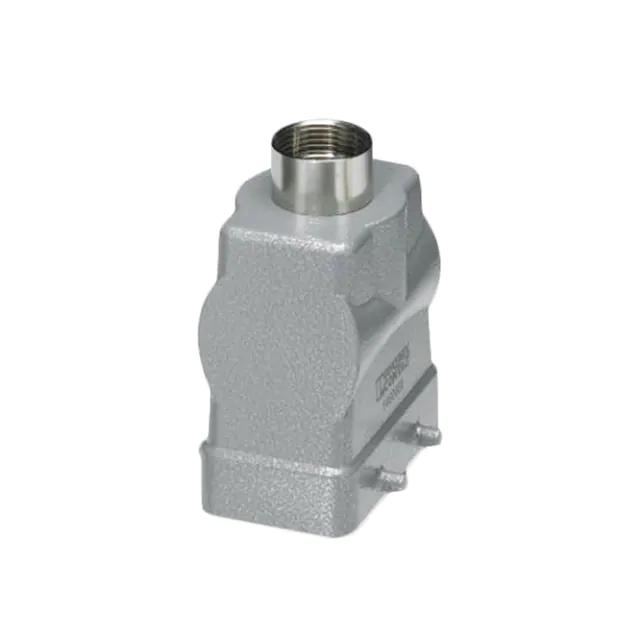 This is manufactured by Phoenix Contact. The manufacturer part number is 1460074. Additionally, the product is designed with top entry Style. It is assigned with possible HTSUS value of 8538.90.8180. The product is rohs3 compliant. It has a typical thread size of pg21. The product has -40°c ~ 125°c operating temperature range. Its typical moisture sensitivity level is not applicable. The product's housing has finished with a rugged powder coated. In addition, it is reach unaffected. It has an integral gray housing colour. It is shipped in bulk. hood Connector type offer robust functionality. The product's diameters include 2.874" l x 1.693" w x 2.205" h (73.00mm x 43.00mm x 56.00mm). The product also features robust aluminum, die cast housing material. It is IP rated with ip65 - dust tight, water resistant. The product heavycon® b, is a highly preferred choice for users. Lock Type & Location Information: locking clip (2) on base bottom. The product is available in b10 size. The product is designated with the ear99 code number