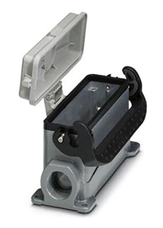 This is manufactured by Phoenix Contact. The manufacturer part number is 1604833. The product heavycon b24, is a highly preferred choice for users. Additionally, the product is designed with side entry Style. It is assigned with possible HTSUS value of 8538.90.8180. The product is rohs compliant. It has a typical thread size of m25. The product has -40°c ~ 125°c operating temperature range. Its typical moisture sensitivity level is 1 (unlimited). The product's housing has finished with a rugged powder coated. It has an integral gray housing colour. It is shipped in bulk. base - box mount Connector type offer robust functionality. The product's diameters include 5.669" l x 2.244" w x 2.638" h (144.00mm x 57.00mm x 67.00mm). The product also features robust aluminum, die cast housing material. It is IP rated with ip65 - dust tight, water resistant. The splendid features of the product include cover. The product heavycon® b, is a highly preferred choice for users. Lock Type & Location Information: locking clip (1) on base bottom. The product is available in b24 size. The product is designated with the ear99 code number