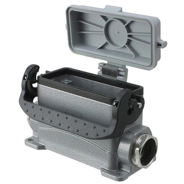 This is manufactured by Phoenix Contact. The manufacturer part number is 1771697. It has a typical thread size of pg21. The product heavycon b16, is a highly preferred choice for users. It is a type of housing accessory. Additionally, the product is designed with side entry Style. It is assigned with possible HTSUS value of 8538.90.8180. The product is rohs3 compliant. The product has -40°c ~ 125°c operating temperature range. Its typical moisture sensitivity level is 1 (unlimited). The product's housing has finished with a rugged powder coated. In addition, it is reach unaffected. It has an integral gray housing colour. It is shipped in bulk. base - box mount Connector type offer robust functionality. The product's diameters include 4.606" l x 2.244" w x 2.638" h (117.00mm x 57.00mm x 67.00mm). The product also features robust aluminum, die cast housing material. It is IP rated with ip65 - dust tight, water resistant. The splendid features of the product include cover, feed through. The product heavycon® b, is a highly preferred choice for users. Lock Type & Location Information: locking clip (1) on base bottom. The product is available in b16 size. The product is designated with the ear99 code number