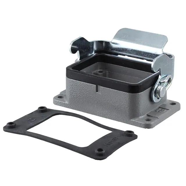 This is manufactured by HARTING. The manufacturer part number is 09300060301ML. Additionally, the product is designed with bottom entry Style. It is assigned with possible HTSUS value of 8538.90.8180. The product is rohs3 compliant. The product has -40°c ~ 125°c operating temperature range. Its typical moisture sensitivity level is 1 (unlimited). The product's housing has finished with a rugged powder coated. In addition, it is reach unaffected. It has an integral gray housing colour. It is shipped in bulk. base - panel mount Connector type offer robust functionality. The product's diameters include 3.150" l x 1.709" w x 1.138" h (80.00mm x 43.40mm x 28.90mm). It has a long 11 weeks standard lead time. The product also features robust aluminum, die cast housing material. It is IP rated with ip65 - dust tight, water resistant. The product han® b, is a highly preferred choice for users. Lock Type & Location Information: locking clip (1) on base bottom. The product is available in 6b size. Moreover, it corresponds to 093000603, a base product number of the product. The product is designated with the ear99 code number