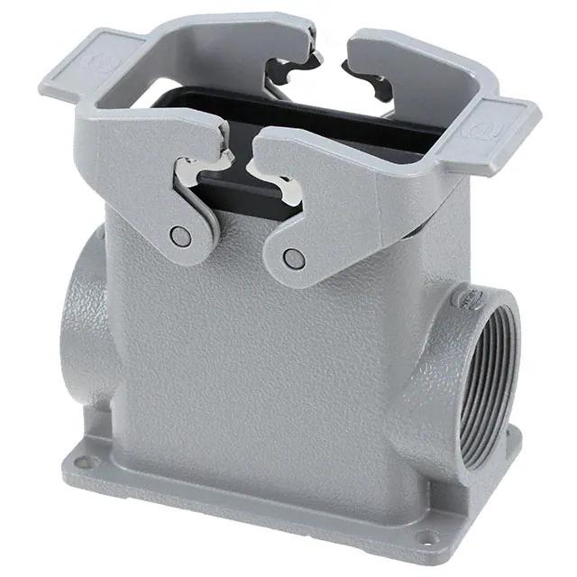 This is manufactured by HARTING. The manufacturer part number is 09300100233. Additionally, the product is designed with side entry Style. It is assigned with possible HTSUS value of 8538.90.8180. The product is rohs3 compliant. It has a typical thread size of pg29. The product has -40°c ~ 125°c operating temperature range. Its typical moisture sensitivity level is 1 (unlimited). The product's housing has finished with a rugged powder coated. In addition, it is reach unaffected. It has an integral gray housing colour. It is shipped in bulk. base - box mount Connector type offer robust functionality. The product's diameters include 3.701" l x 2.244" w x 3.181" h (94.00mm x 57.00mm x 80.80mm). It has a long 8 weeks standard lead time. The product also features robust aluminum, die cast housing material. It is IP rated with ip65 - dust tight, water resistant. The product han® b, is a highly preferred choice for users. Lock Type & Location Information: locking clip (2) on base bottom. The product is available in 10b size. Moreover, it corresponds to 09300100, a base product number of the product. The product is designated with the ear99 code number