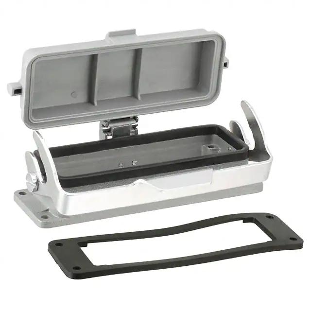 This is manufactured by TE Connectivity AMP Connectors. The manufacturer part number is H24B-AD-LB. Additionally, the product is designed with bottom entry Style. It is assigned with possible HTSUS value of 8538.90.8180. The product is rohs compliant. The product has -40°c ~ 125°c operating temperature range. Its typical moisture sensitivity level is 1 (unlimited). The product's housing has finished with a rugged powder coated. It has an integral gray housing colour. It is shipped in bulk. base - panel mount Connector type offer robust functionality. The product's diameters include 5.598" l x 1.799" w x 1.173" h (142.20mm x 45.70mm x 29.80mm). It has a long 18 weeks standard lead time. The product also features robust aluminum alloy, die cast housing material. It is IP rated with ip65 - dust tight, water resistant. The splendid features of the product include cover. The product hb, is a highly preferred choice for users. Lock Type & Location Information: locking clip (1) on base bottom. The product is available in 24b size. Moreover, it corresponds to h24b, a base product number of the product. The product is designated with the ear99 code number