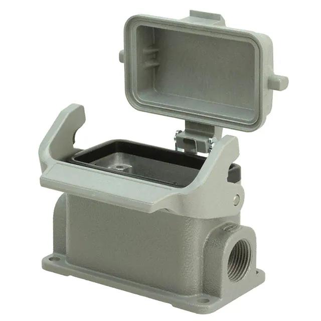 This is manufactured by HARTING. The manufacturer part number is 19300101255. The product is available in surface mount configuration. The product han b, is a highly preferred choice for users. It has a typical thread size of m20. Whereas, the 10b is the manufacture's size code. It comes in connector housing configuration. The product is available in 10b size. Additionally, the product is designed with side entry Style. It is assigned with possible HTSUS value of 8538.90.8180. The product is rohs3 compliant. The product has -40°c ~ 125°c operating temperature range. Its typical moisture sensitivity level is 1 (unlimited). The product's housing has finished with a rugged powder coated. In addition, it is reach unaffected. It has an integral gray housing colour. It is shipped in bulk. base - box mount Connector type offer robust functionality. The product's diameters include 3.701" l x 2.047" w x 2.118" h (94.00mm x 52.00mm x 53.80mm). It has a long 11 weeks standard lead time. The product also features robust aluminum, die cast housing material. It is IP rated with ip65 - dust tight, water resistant. The splendid features of the product include cover. The product han® b, is a highly preferred choice for users. Lock Type & Location Information: locking clip (1) on base bottom. Moreover, it corresponds to 19300101, a base product number of the product. The product is designated with the ear99 code number