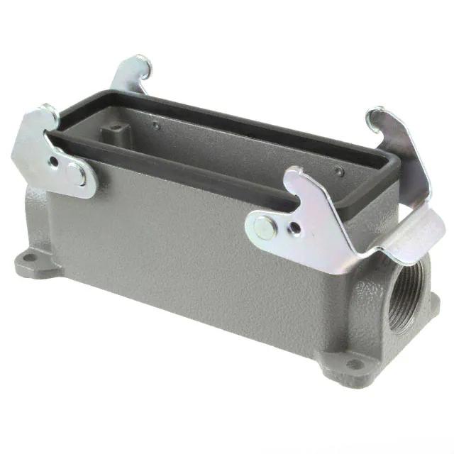 This is manufactured by TE Connectivity AMP Connectors. The manufacturer part number is H24B-SGR-M25. Additionally, the product is designed with side entry Style. It is assigned with possible HTSUS value of 8538.90.8180. The product is rohs compliant. It has a typical thread size of m25. The product has -40°c ~ 125°c operating temperature range. Its typical moisture sensitivity level is 1 (unlimited). The product's housing has finished with a rugged powder coated. It has an integral gray housing colour. It is shipped in bulk. base - box mount Connector type offer robust functionality. It has a long 21 weeks standard lead time. The product also features robust aluminum alloy, die cast housing material. It is IP rated with ip65 - dust tight, water resistant. The product hb, is a highly preferred choice for users. Lock Type & Location Information: locking clip (2) on base bottom. The product is available in 24b size. Moreover, it corresponds to h24b, a base product number of the product. The product is designated with the ear99 code number