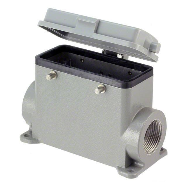 This is manufactured by TE Connectivity AMP Connectors. The manufacturer part number is H16B-SDRH-BO-2PG21. Additionally, the product is designed with side entry Style. It is assigned with possible HTSUS value of 8538.90.8180. The product is rohs compliant. It has a typical thread size of pg21. The product has -40°c ~ 125°c operating temperature range. Its typical moisture sensitivity level is 1 (unlimited). The product's housing has finished with a rugged powder coated. It has an integral gray housing colour. It is shipped in bulk. base - box mount Connector type offer robust functionality. The product's diameters include 4.606" l x 2.244" w x 2.996" h (117.00mm x 57.00mm x 76.10mm). It has a long 18 weeks standard lead time. The product also features robust aluminum alloy, die cast housing material. It is IP rated with ip65 - dust tight, water resistant. The splendid features of the product include cover, feed through. The product hb, is a highly preferred choice for users. Lock Type & Location Information: locking clip (2) on hood. The product is available in 16b size. Moreover, it corresponds to h16b, a base product number of the product. The product is designated with the ear99 code number