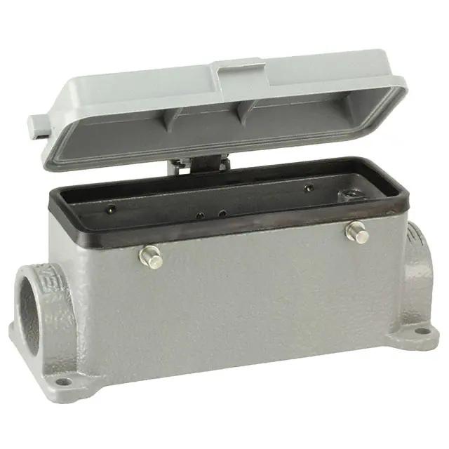 This is manufactured by TE Connectivity AMP Connectors. The manufacturer part number is H24B-SDR-BO-PG21. Additionally, the product is designed with side entry Style. It is assigned with possible HTSUS value of 8538.90.8180. The product is rohs compliant. It has a typical thread size of pg21. The product has -40°c ~ 125°c operating temperature range. Its typical moisture sensitivity level is 1 (unlimited). The product's housing has finished with a rugged powder coated. It has an integral gray housing colour. It is shipped in bulk. base - box mount Connector type offer robust functionality. It has a long 16 weeks standard lead time. The product also features robust aluminum alloy, die cast housing material. It is IP rated with ip65 - dust tight, water resistant. The splendid features of the product include cover. The product hb, is a highly preferred choice for users. Lock Type & Location Information: locking clip (2) on hood. The product is available in 24b size. Moreover, it corresponds to h24b, a base product number of the product. The product is designated with the ear99 code number