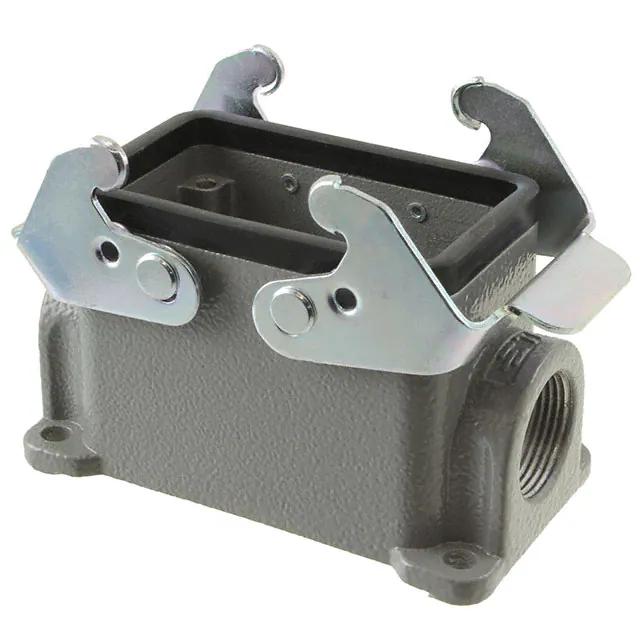 This is manufactured by TE Connectivity AMP Connectors. The manufacturer part number is H10B-SGR-PG16. Additionally, the product is designed with side entry Style. It is assigned with possible HTSUS value of 8538.90.8180. The product is rohs compliant. It has a typical thread size of pg16. The product has -40°c ~ 125°c operating temperature range. Its typical moisture sensitivity level is 1 (unlimited). The product's housing has finished with a rugged powder coated. It has an integral gray housing colour. It is shipped in bulk. base - box mount Connector type offer robust functionality. It has a long 21 weeks standard lead time. The product also features robust aluminum alloy, die cast housing material. It is IP rated with ip65 - dust tight, water resistant. The product hb, is a highly preferred choice for users. Lock Type & Location Information: locking clip (2) on base bottom. The product is available in 10b size. Moreover, it corresponds to h10b, a base product number of the product. The product is designated with the ear99 code number