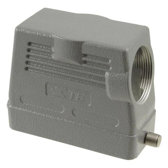 This is manufactured by TE Connectivity AMP Connectors. The manufacturer part number is H16B-TSH-RO-PG29. Additionally, the product is designed with side entry Style. It is assigned with possible HTSUS value of 8538.90.8180. The product is rohs compliant. It has a typical thread size of pg29. The product has -40°c ~ 125°c operating temperature range. Its typical moisture sensitivity level is 1 (unlimited). The product's housing has finished with a rugged powder coated. It has an integral gray housing colour. It is shipped in bulk. hood Connector type offer robust functionality. The product's diameters include 3.681" l x 1.693" w x 2.992" h (93.50mm x 43.00mm x 76.00mm). It has a long 15 weeks standard lead time. The product also features robust aluminum alloy, die cast housing material. It is IP rated with ip65 - dust tight, water resistant. The product hb, is a highly preferred choice for users. Lock Type & Location Information: locking clip (1) on base bottom. The product is available in 16b size. Moreover, it corresponds to h16b, a base product number of the product. The product is designated with the ear99 code number