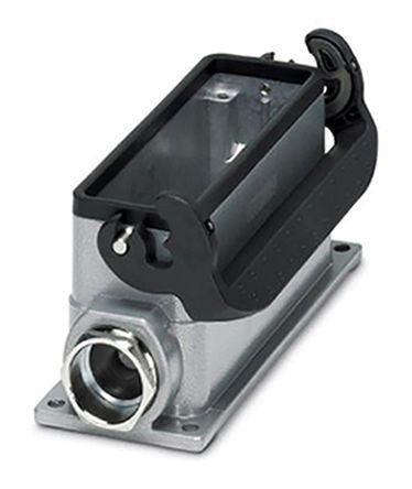 This is manufactured by Phoenix Contact. The manufacturer part number is 1586934. It comes in housing configuration. Additionally, the product is designed with side entry Style. It is assigned with possible HTSUS value of 8538.90.8180. The product is rohs compliant. It has a typical thread size of m25. The product has -40°c ~ 125°c operating temperature range. Its typical moisture sensitivity level is not applicable. The product's housing has finished with a rugged powder coated. It has an integral gray housing colour. It is shipped in bulk. base - box mount Connector type offer robust functionality. The product's diameters include 5.669" l x 2.244" w x 2.638" h (144.00mm x 57.00mm x 67.00mm). The product also features robust aluminum, die cast housing material. It is IP rated with ip65 - dust tight, water resistant. The product heavycon® b, is a highly preferred choice for users. Lock Type & Location Information: locking clip (1) on base bottom. The product is available in b24 size. The product is designated with the ear99 code number