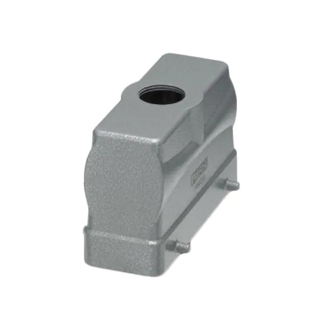 This is manufactured by Phoenix Contact. The manufacturer part number is 1460222. Additionally, the product is designed with top entry Style. It is assigned with possible HTSUS value of 8538.90.8180. The product is rohs3 compliant. It has a typical thread size of m32. The product has -40°c ~ 125°c operating temperature range. Its typical moisture sensitivity level is 1 (unlimited). The product's housing has finished with a rugged powder coated. In addition, it is reach unaffected. It has an integral gray housing colour. It is shipped in bulk. hood Connector type offer robust functionality. The product's diameters include 4.724" l x 1.693" w x 2.559" h (120.00mm x 43.00mm x 65.00mm). The product also features robust aluminum, die cast housing material. It is IP rated with ip65 - dust tight, water resistant. The product heavycon® b, is a highly preferred choice for users. Lock Type & Location Information: locking clip (2) on base bottom. The product is available in b24 size. The product is designated with the ear99 code number