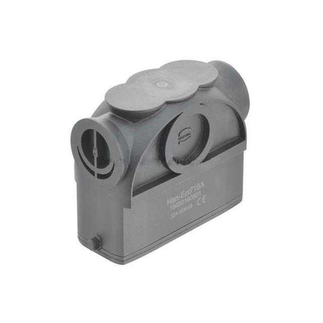 This is manufactured by HARTING. The manufacturer part number is 19460160801. Additionally, the product is designed with side entry Style. It is assigned with possible HTSUS value of 8538.90.8180. The product is rohs3 compliant. The product has -40°c ~ 125°c operating temperature range. Its typical moisture sensitivity level is not applicable. In addition, it is reach unaffected. It has an integral black housing colour. It is shipped in bulk. hood Connector type offer robust functionality. The product also features robust polyamide (pa), nylon housing material. It is IP rated with ip65 - dust tight, water resistant. The product han-eco®, is a highly preferred choice for users. Lock Type & Location Information: locking clip (1) on base bottom. The product is available in a16 size. Moreover, it corresponds to 19460160, a base product number of the product. The product is designated with the ear99 code number
