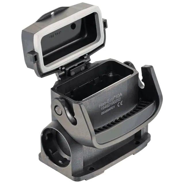 This is manufactured by HARTING. The manufacturer part number is 19462100252. Additionally, the product is designed with side entry Style. It is assigned with possible HTSUS value of 8538.90.8180. The product is rohs3 compliant. It has a typical thread size of m20. The product has -40°c ~ 125°c operating temperature range. Its typical moisture sensitivity level is not applicable. In addition, it is reach unaffected. It has an integral black housing colour. It is shipped in bulk. base - box mount Connector type offer robust functionality. The product also features robust polyamide (pa), nylon housing material. It is IP rated with ip65 - dust tight, water resistant. The splendid features of the product include cover. The product han-eco®, is a highly preferred choice for users. Lock Type & Location Information: locking clip (1) on base bottom. The product is available in a10 size. Moreover, it corresponds to 19462100, a base product number of the product. The product is designated with the ear99 code number