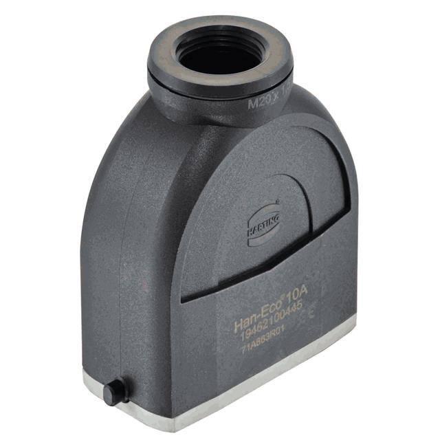 This is manufactured by HARTING. The manufacturer part number is 19462100445. Additionally, the product is designed with top entry Style. It is assigned with possible HTSUS value of 8538.90.8180. The product is rohs3 compliant. It has a typical thread size of m20. The product has -40°c ~ 125°c operating temperature range. Its typical moisture sensitivity level is not applicable. In addition, it is reach unaffected. It has an integral black housing colour. It is shipped in bulk. hood Connector type offer robust functionality. The product also features robust polyamide (pa), nylon housing material. It is IP rated with ip65 - dust tight, water resistant. The product han-eco®, is a highly preferred choice for users. Lock Type & Location Information: locking clip (1) on base bottom. The product is available in a10 size. Moreover, it corresponds to 19462100, a base product number of the product. The product is designated with the ear99 code number