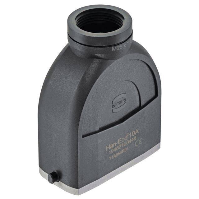 This is manufactured by HARTING. The manufacturer part number is 19462100446. Additionally, the product is designed with top entry Style. It is assigned with possible HTSUS value of 8538.90.8180. The product is rohs3 compliant. It has a typical thread size of m25. The product has -40°c ~ 125°c operating temperature range. Its typical moisture sensitivity level is not applicable. In addition, it is reach unaffected. It has an integral black housing colour. It is shipped in bulk. hood Connector type offer robust functionality. The product also features robust polyamide (pa), nylon housing material. It is IP rated with ip65 - dust tight, water resistant. The product han-eco®, is a highly preferred choice for users. Lock Type & Location Information: locking clip (1) on base bottom. The product is available in a10 size. Moreover, it corresponds to 19462100, a base product number of the product. The product is designated with the ear99 code number