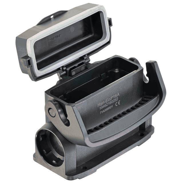 This is manufactured by HARTING. The manufacturer part number is 19462160252. Additionally, the product is designed with side entry Style. It is assigned with possible HTSUS value of 8538.90.8180. The product is rohs3 compliant. It has a typical thread size of m20. The product has -40°c ~ 125°c operating temperature range. Its typical moisture sensitivity level is not applicable. In addition, it is reach unaffected. It has an integral black housing colour. It is shipped in bulk. base - box mount Connector type offer robust functionality. The product also features robust polyamide (pa), nylon housing material. It is IP rated with ip65 - dust tight, water resistant. The splendid features of the product include cover. The product han-eco®, is a highly preferred choice for users. Lock Type & Location Information: locking clip (1) on base bottom. The product is available in a16 size. Moreover, it corresponds to 19462160, a base product number of the product. The product is designated with the ear99 code number