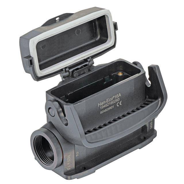 This is manufactured by HARTING. The manufacturer part number is 19462160293. Additionally, the product is designed with side entry Style. It is assigned with possible HTSUS value of 8538.90.8180. The product is rohs3 compliant. It has a typical thread size of m25. The product has -40°c ~ 125°c operating temperature range. Its typical moisture sensitivity level is not applicable. In addition, it is reach unaffected. It has an integral black housing colour. It is shipped in bulk. base - box mount Connector type offer robust functionality. The product also features robust polyamide (pa), nylon housing material. It is IP rated with ip65 - dust tight, water resistant. The splendid features of the product include cover. The product han-eco®, is a highly preferred choice for users. Lock Type & Location Information: locking clip (1) on base bottom. The product is available in a16 size. Moreover, it corresponds to 19462160, a base product number of the product. The product is designated with the ear99 code number