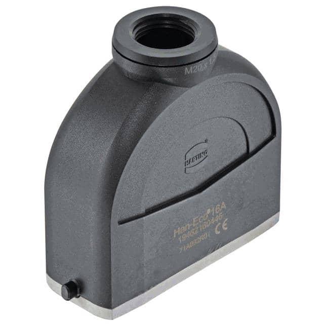 This is manufactured by HARTING. The manufacturer part number is 19462160445. Additionally, the product is designed with top entry Style. It is assigned with possible HTSUS value of 8538.90.8180. The product is rohs3 compliant. It has a typical thread size of m20. The product has -40°c ~ 125°c operating temperature range. Its typical moisture sensitivity level is not applicable. In addition, it is reach unaffected. It has an integral black housing colour. It is shipped in bulk. hood Connector type offer robust functionality. The product also features robust polyamide (pa), nylon housing material. It is IP rated with ip65 - dust tight, water resistant. The product han-eco®, is a highly preferred choice for users. Lock Type & Location Information: locking clip (1) on base bottom. The product is available in a16 size. Moreover, it corresponds to 19462160, a base product number of the product. The product is designated with the ear99 code number