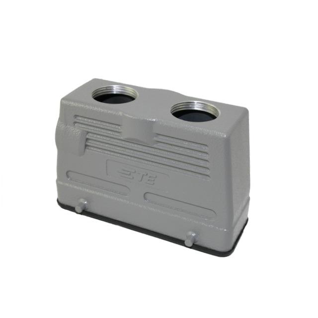 This is manufactured by TE Connectivity AMP Connectors. The manufacturer part number is T1240240221-100. Additionally, the product is designed with top entry, dual Style. It is assigned with possible HTSUS value of 8538.90.8180. The product is rohs compliant. It has a typical thread size of pg21. The product has -40°c ~ 125°c operating temperature range. Its typical moisture sensitivity level is not applicable. The product's housing has finished with a rugged powder coated. In addition, it is reach unaffected. It has an integral gray housing colour. It is shipped in bulk. hood Connector type offer robust functionality. The product's diameters include 4.724" l x 1.693" w x 3.091" h (120.00mm x 43.00mm x 78.50mm). It has a long 16 weeks standard lead time. The product also features robust aluminum alloy, die cast housing material. It is IP rated with ip65 - dust tight, water resistant. The product hb, is a highly preferred choice for users. Lock Type & Location Information: locking clip (2) on base bottom. The product is available in h24b size. Moreover, it corresponds to t124, a base product number of the product. The product is designated with the ear99 code number
