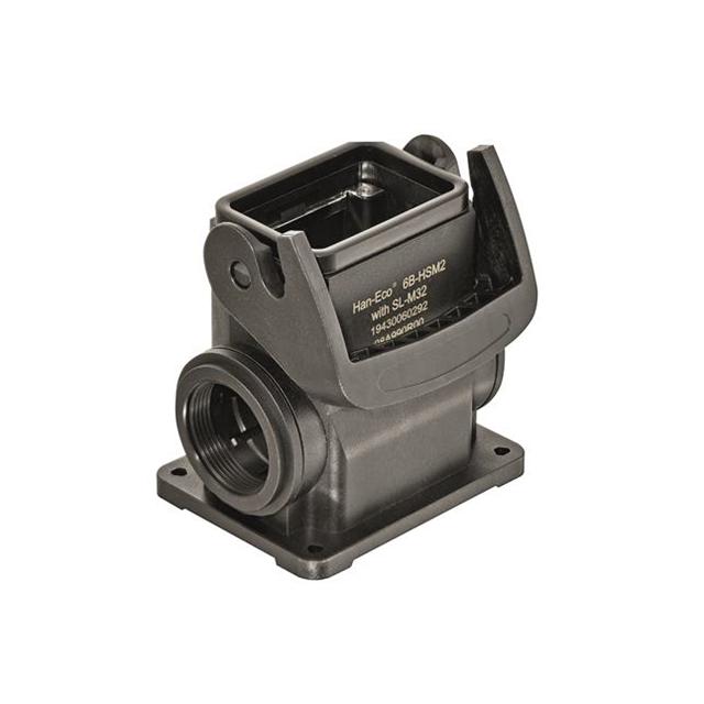 This is manufactured by HARTING. The manufacturer part number is 19430060292. Additionally, the product is designed with side entry Style. It is assigned with possible HTSUS value of 8538.90.8180. The product is rohs3 compliant. It has a typical thread size of m32. The product has -40°c ~ 125°c operating temperature range. Its typical moisture sensitivity level is not applicable. In addition, it is reach unaffected. It has an integral black housing colour. It is shipped in bulk. base - box mount Connector type offer robust functionality. The product's diameters include 3.307" l x 2.559" w x 3.465" h (84.00mm x 65.00mm x 88.00mm). It has a long 8 weeks standard lead time. The product also features robust polyamide (pa), nylon, glass filled housing material. It is IP rated with ip66 - dust tight, water resistant. The splendid features of the product include feed through. The product han-eco® b, is a highly preferred choice for users. Lock Type & Location Information: locking clip (1) on base bottom. The product is available in 6b size. Moreover, it corresponds to 19430060, a base product number of the product. The product is designated with the ear99 code number